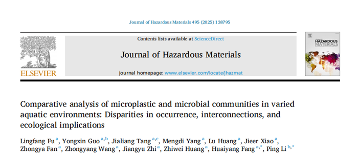 近日,必威betway88中文版(betway必威西生态环境应急研究所)水生态环境研究中心在环境领域知名期刊Journal of Hazardous Materials(中科院一区Top期刊,影响因子:11.3)发表论文“Comparative analysis of microplastic and microbial communities in varied aquatic environments Disparities in occurrence, interconnections, and ecological implications”。华南所(应急所)付玲芳副研究员为第一作者,房怀阳正高级工程师为共同通讯作者。论文DOI:https://doi.org/10.1016/j.jhazmat.2025.138795。