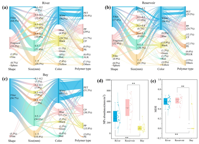 图1 三类水环境中MPs丰度、形态、聚合物类型及多样性比较(来源:ScienceDirect)