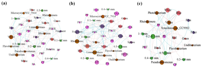 图4 三类水环境MPs-微生物共现网络分析(来源:ScienceDirect)